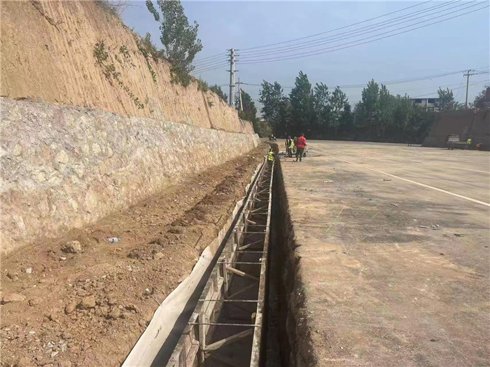 三號支線(xiàn)護腳墻勾縫、邊溝施工中。